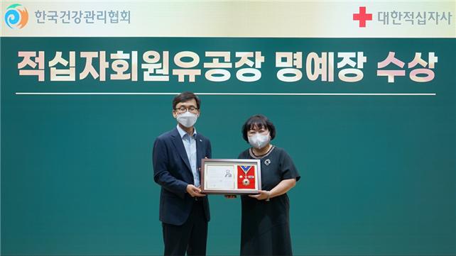 적십자회원유공장은 재원조성 및 인도주의 정신 확산에 기여한 개인·단체에게 수여하는 포상으로, 건협은 지난 3월 동해안 지역 산불피해 이재민을 대상으로 생활용품 구호키트를 지원하며 피해복구 및 일상회복을 위해 노력한 공로를 인정받아 명예장을 받게 됐다.
