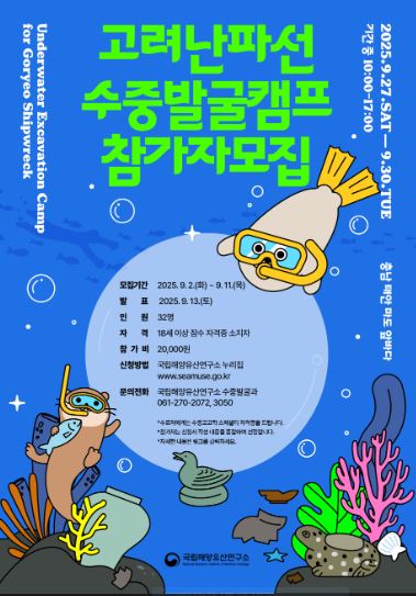 「고려난파선 수중발굴 캠프」에 대한 자세한 내용이 궁금하거나 관련 문의가 필요한 경우 국립해양유산연구소 누리집(www.seamuse.go.kr)을 참조하거나, 전화(☎061-270-2072, 3050)로 문의하면 된다.