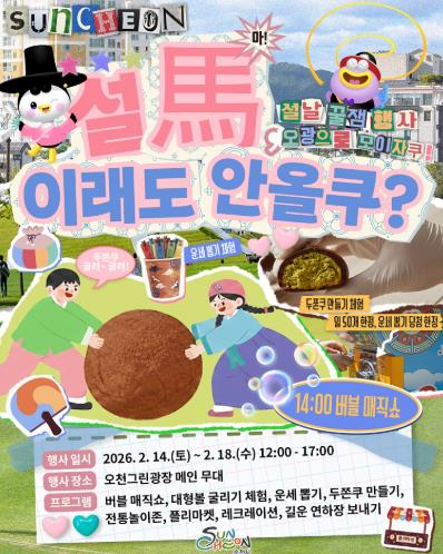 행사는 매일 낮 12시부터 오후 5시까지 진행되며, 대형볼 체험과 에어볼 레크레이션 등 현장 참여형 프로그램을 비롯해 두쫀쿠 만들기 체험, 신년 운세 뽑기, 전통놀이 등이 운영될 예정이다.