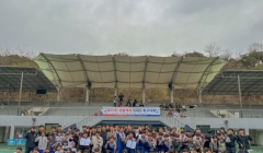 순천연합조합공동사업법인의 ‘2026년 전국 유통·판매 500억원 달성탑' 수상을 기념해 법인 관계자들이 순천APC에서 기념촬영을 하고 있다.