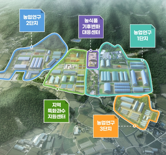 해남군은 올 하반기 착공하는 국립기후변화대응센터를 비롯해 전라남도 특화과수지원센터, 농업연구1, 2, 3단지 등 연관시설을 집적화해 국내 최대 규모 군 농업연구단지를 조성하고 있다. 총 82ha 규모로, 1단지에는 고구마연구센터와 청년농업인 임대농장, 과학영농 실증시험 기반시설 등이 이미 완공되어 운영 중이다.