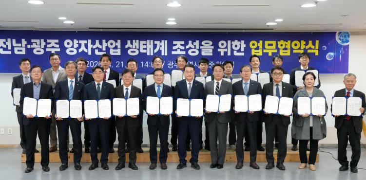 전남도와 광주시는 21일 광주시청 중회의실에서 대학, 연구기관, 기업 등 총 23개 기관이 참여하는 ‘전남·광주 양자산업 생태계 조성을 위한 업무협약식’을 개최했다.