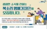 GNP2026.01.14 12:15[굿뉴스피플]광주광역시 북구는 구정 소식지인 ‘북소리’를 통해 지역의 생생한 소식을 전달하는 명예기자단을 모집한다고 14일 밝혔다. ‘북소리 명예기자단’은 구정 홍보에 주민들의 참여를 활성화하기 위해 지난 2009...